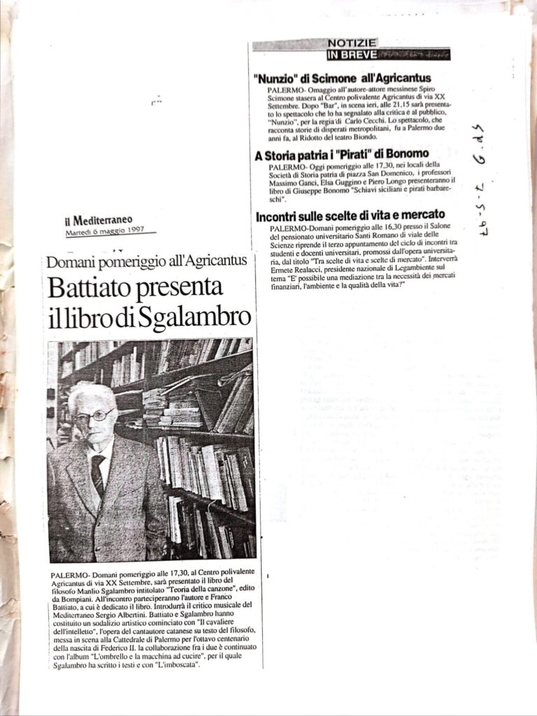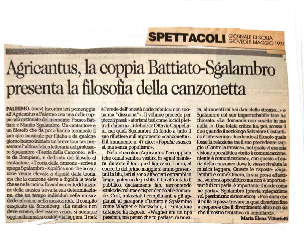 PRESENTAZIONE MANLIO SGALAMBRO – FRANCO BATTIATO 1997